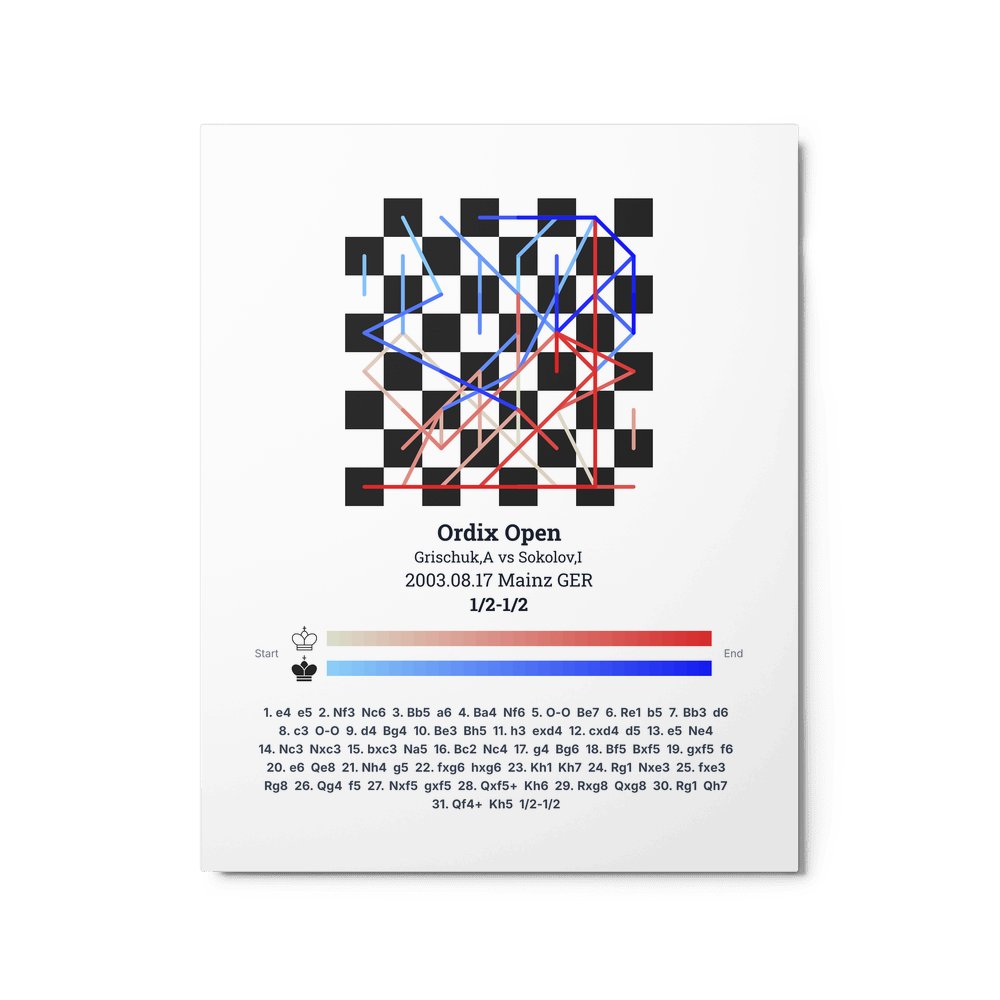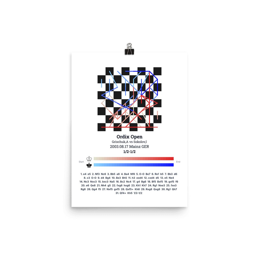 Museum-quality poster on thick, durable matte paper. A sharp, clean look for any chess visualisation.