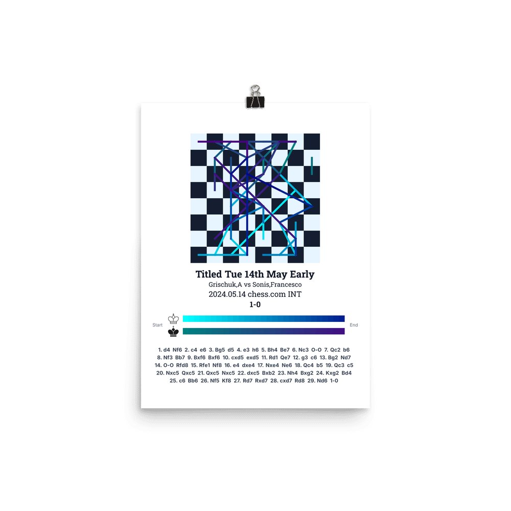 Museum-quality poster on thick, durable matte paper. A sharp, clean look for any chess visualisation.