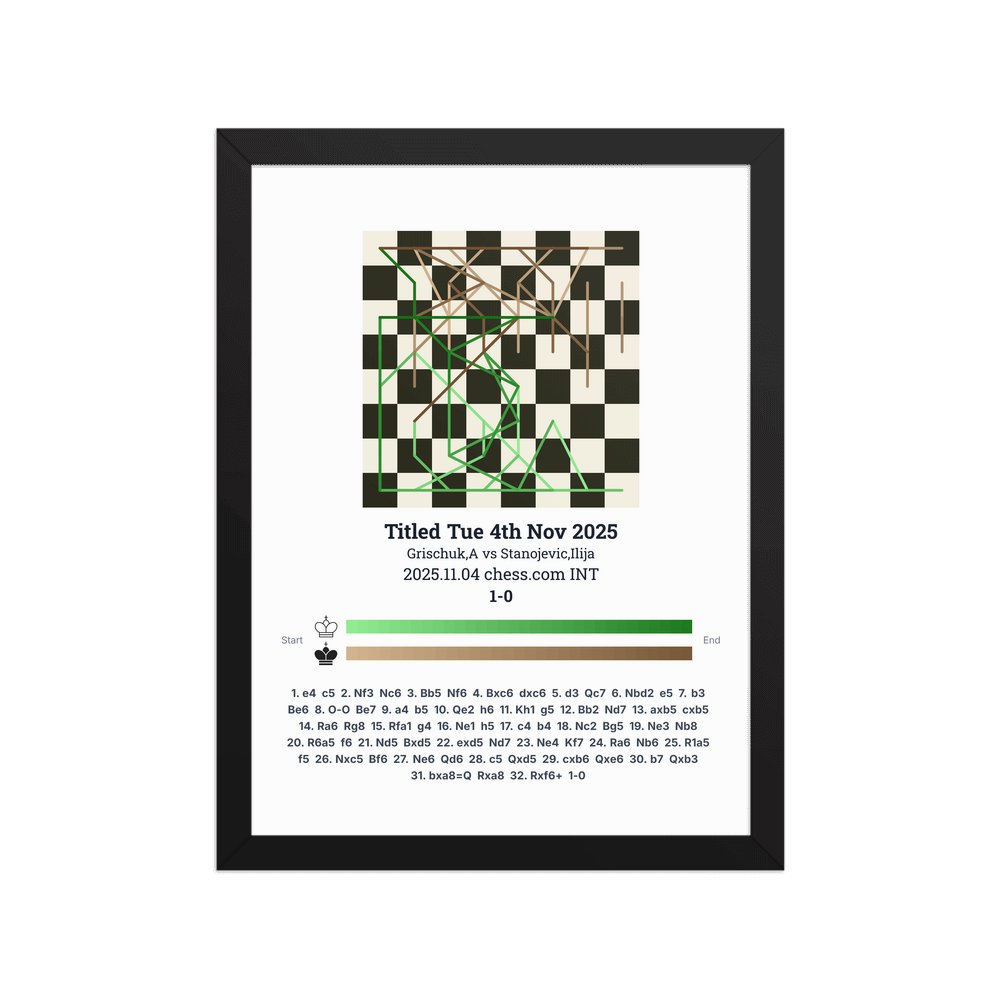 Museum-quality poster on thick, durable matte paper. A sharp, clean look for any chess visualisation.