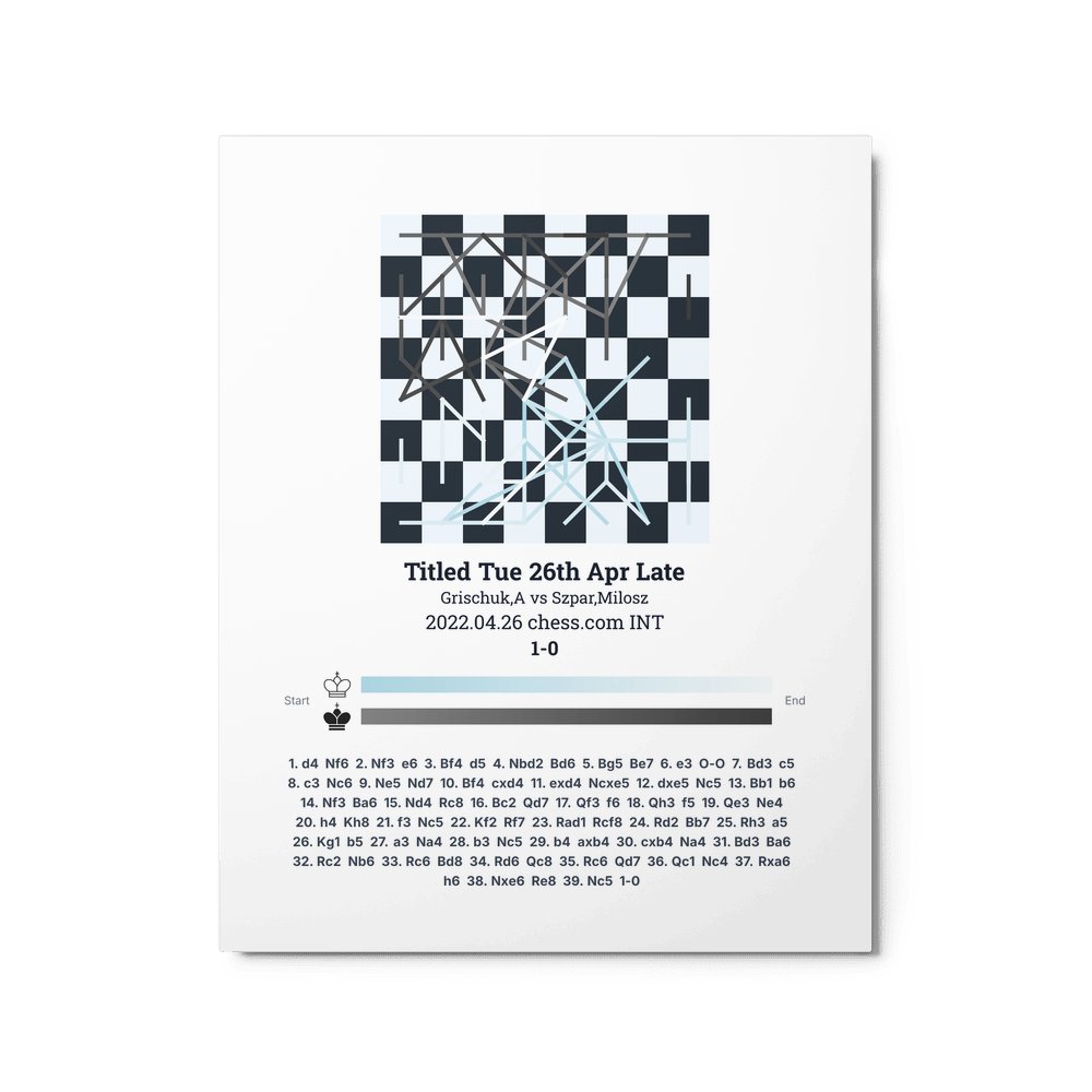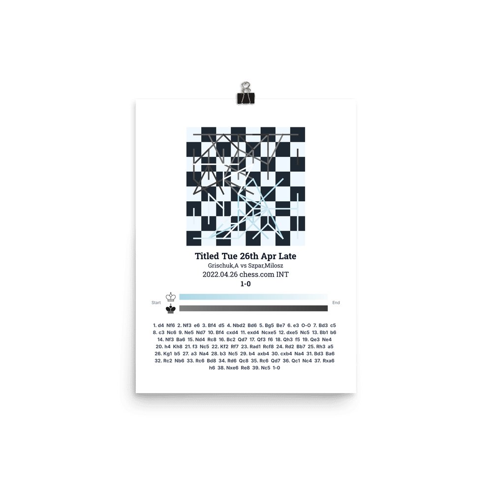 Museum-quality poster on thick, durable matte paper. A sharp, clean look for any chess visualisation.