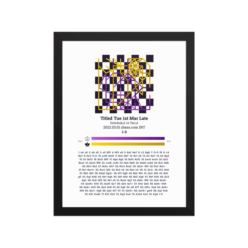 Museum-quality poster on thick, durable matte paper. A sharp, clean look for any chess visualisation.