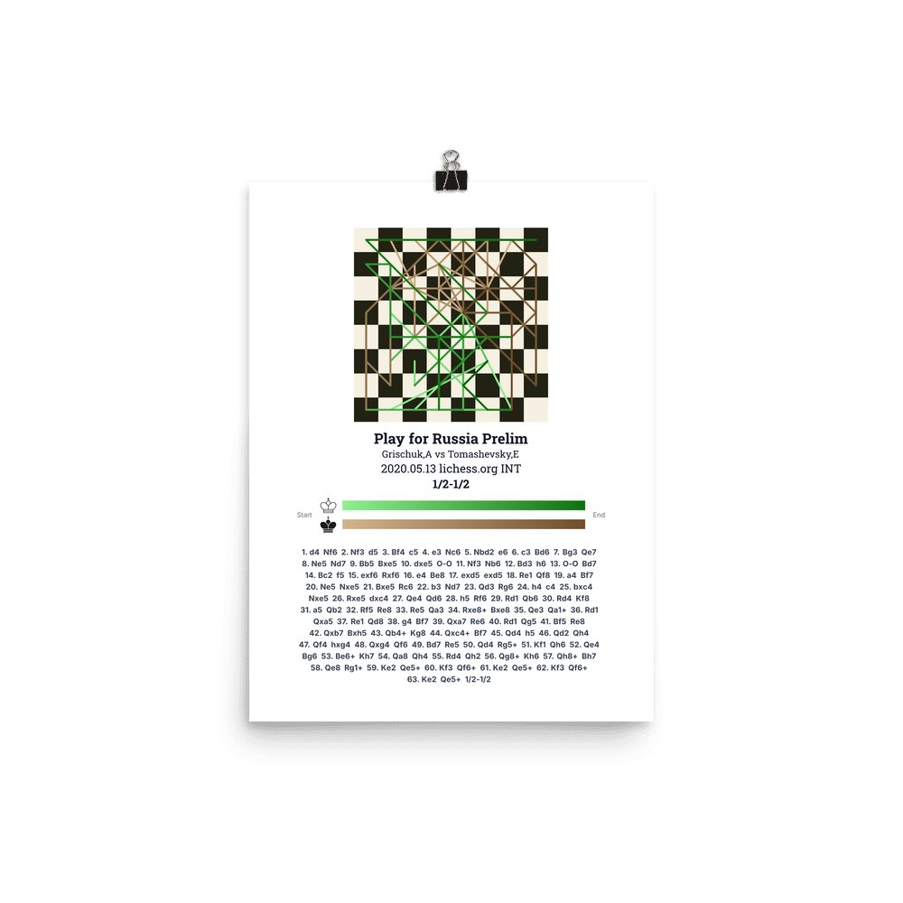 Museum-quality poster on thick, durable matte paper. A sharp, clean look for any chess visualisation.