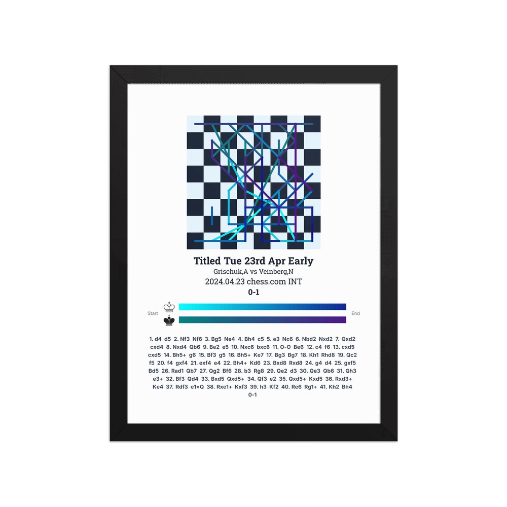 Museum-quality poster on thick, durable matte paper. A sharp, clean look for any chess visualisation.