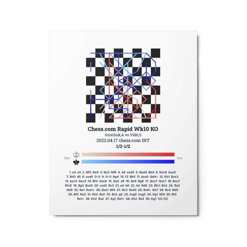 Museum-quality poster on thick, durable matte paper. A sharp, clean look for any chess visualisation.