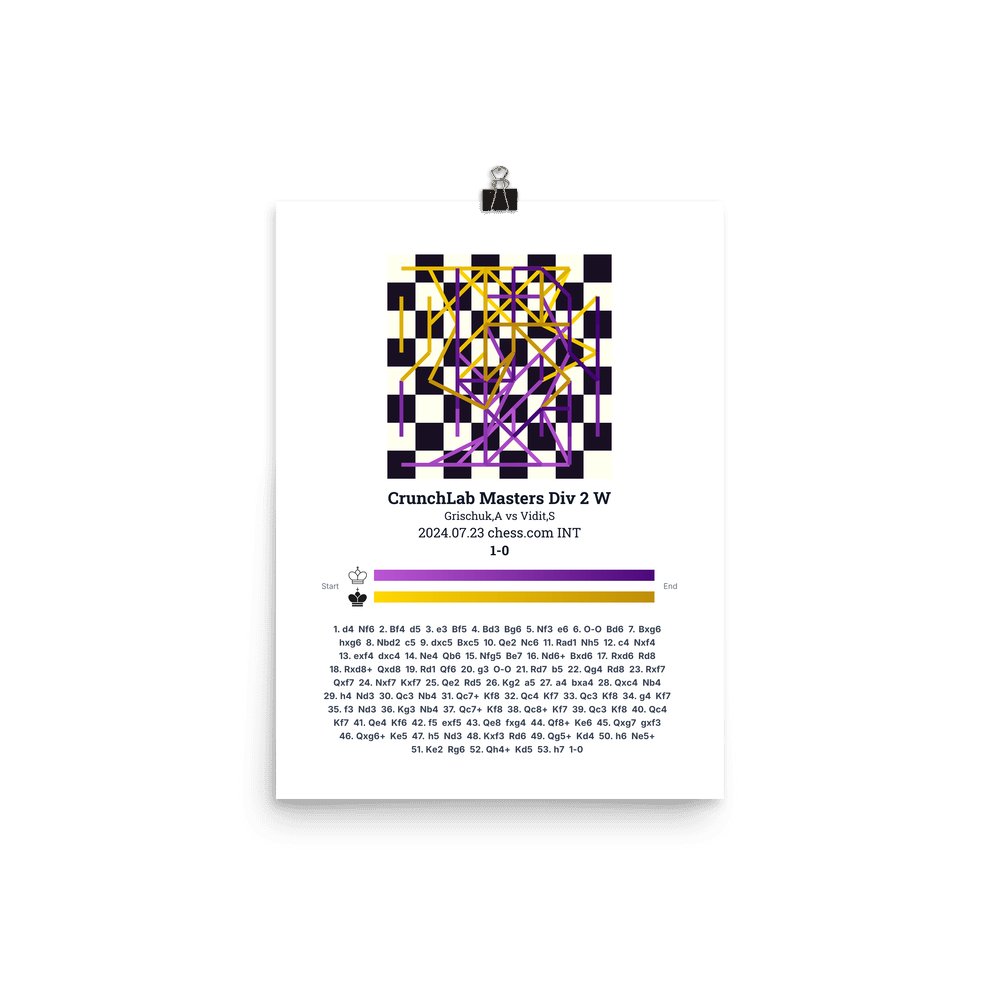 Museum-quality poster on thick, durable matte paper. A sharp, clean look for any chess visualisation.