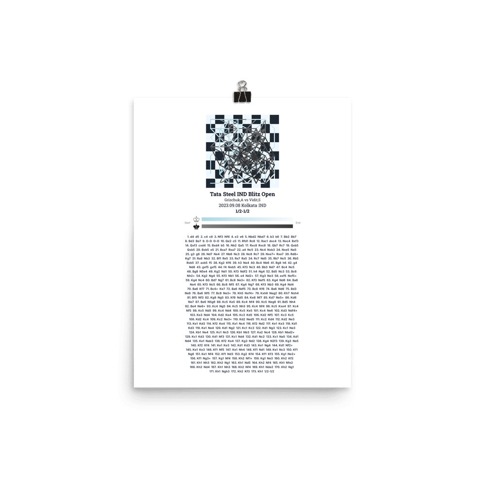 Museum-quality poster on thick, durable matte paper. A sharp, clean look for any chess visualisation.
