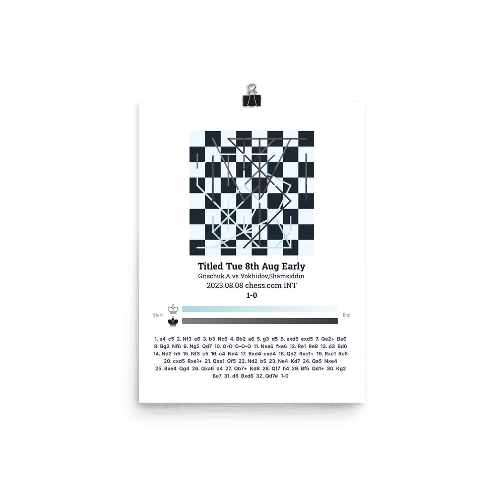 Museum-quality poster on thick, durable matte paper. A sharp, clean look for any chess visualisation.