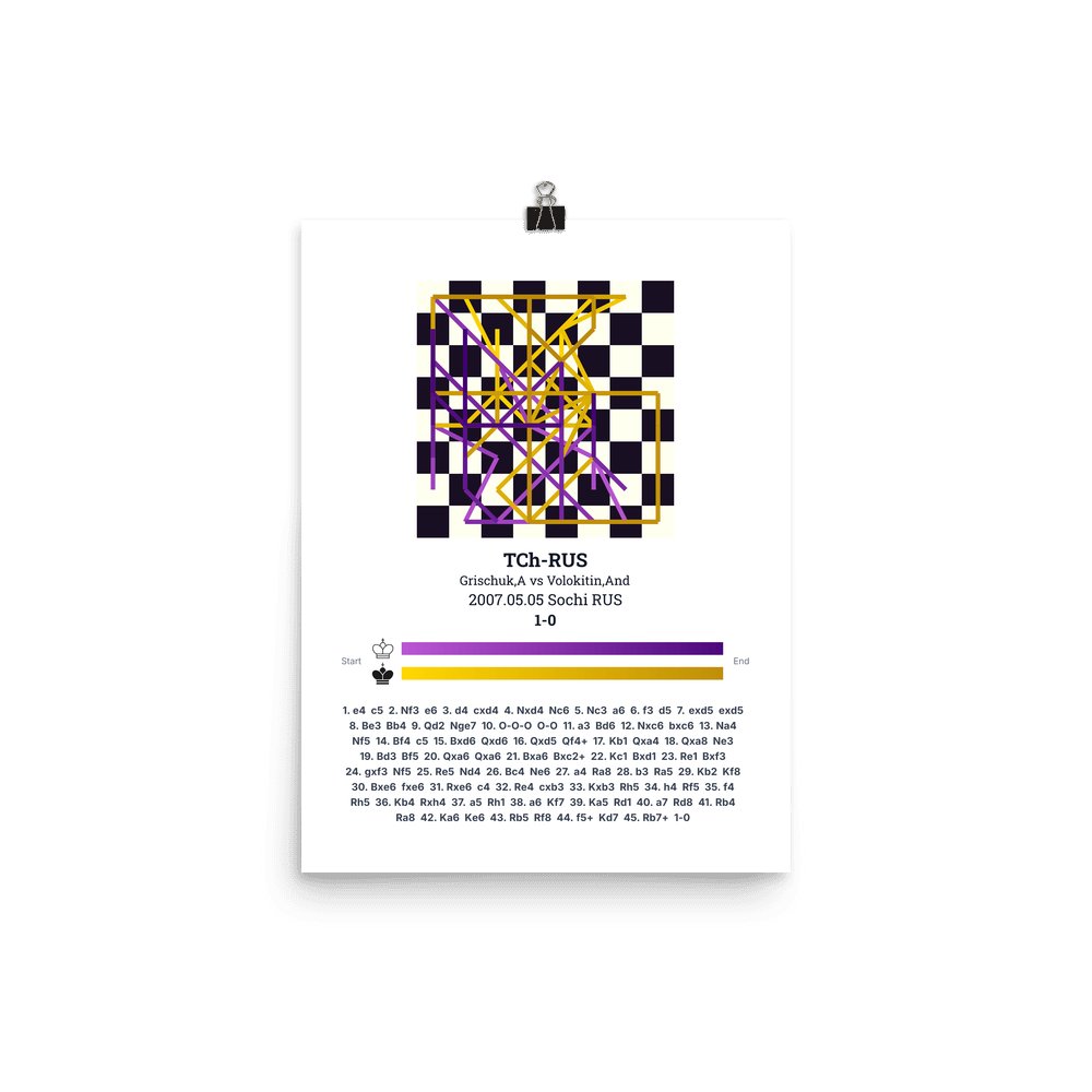 Museum-quality poster on thick, durable matte paper. A sharp, clean look for any chess visualisation.