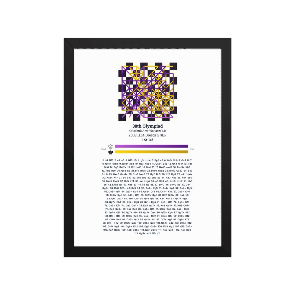 Museum-quality poster on thick, durable matte paper. A sharp, clean look for any chess visualisation.