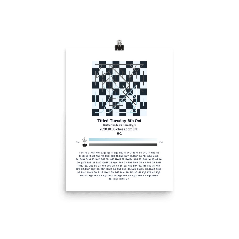 Museum-quality poster on thick, durable matte paper. A sharp, clean look for any chess visualisation.