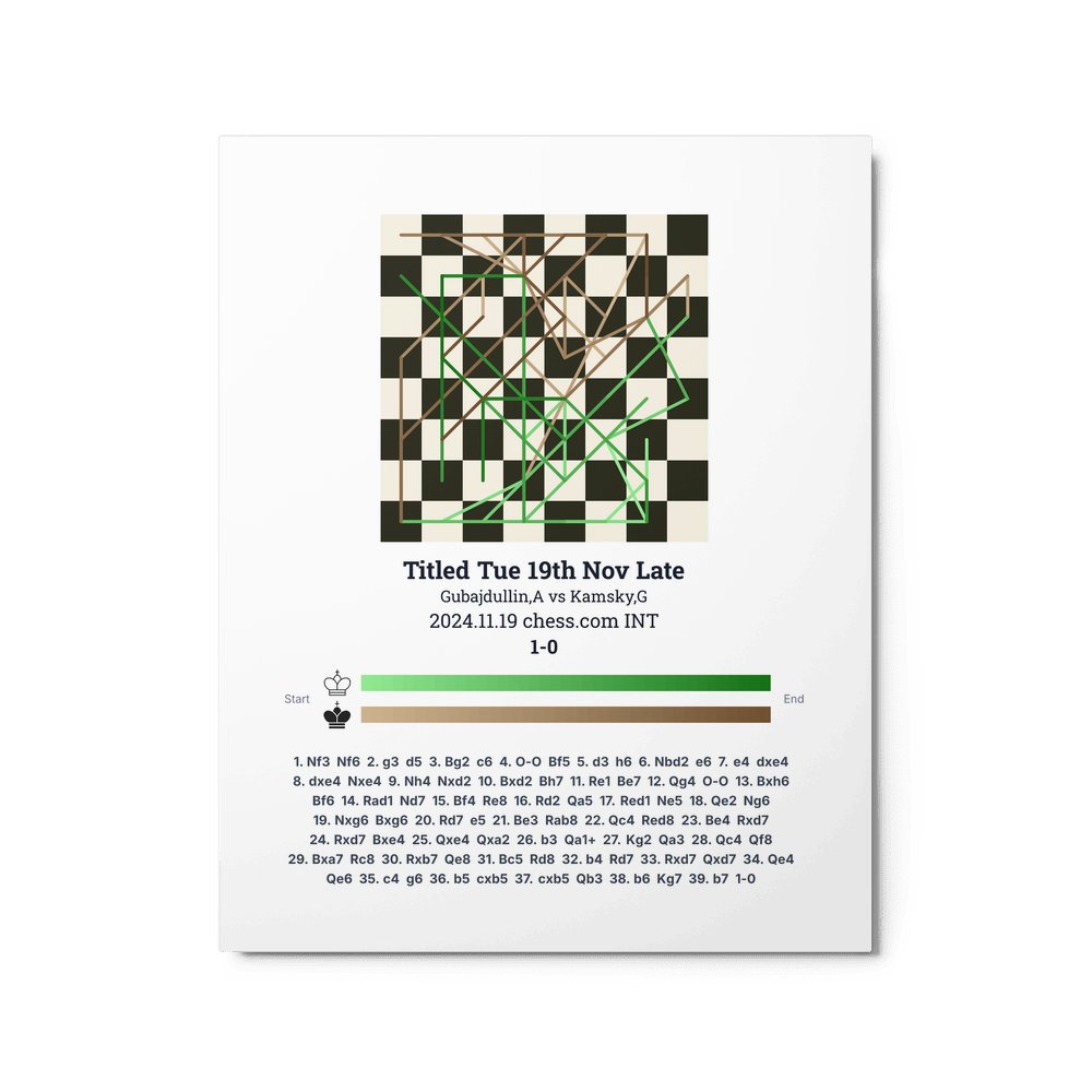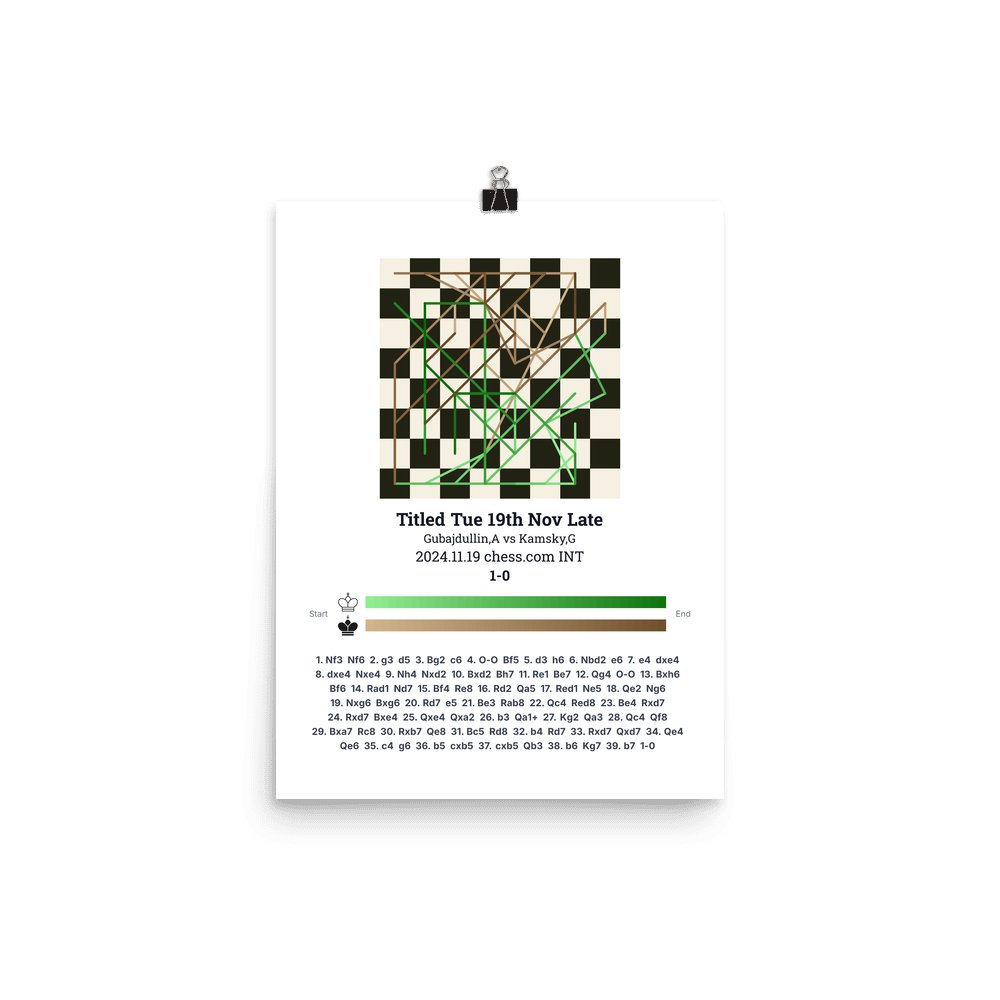 Museum-quality poster on thick, durable matte paper. A sharp, clean look for any chess visualisation.