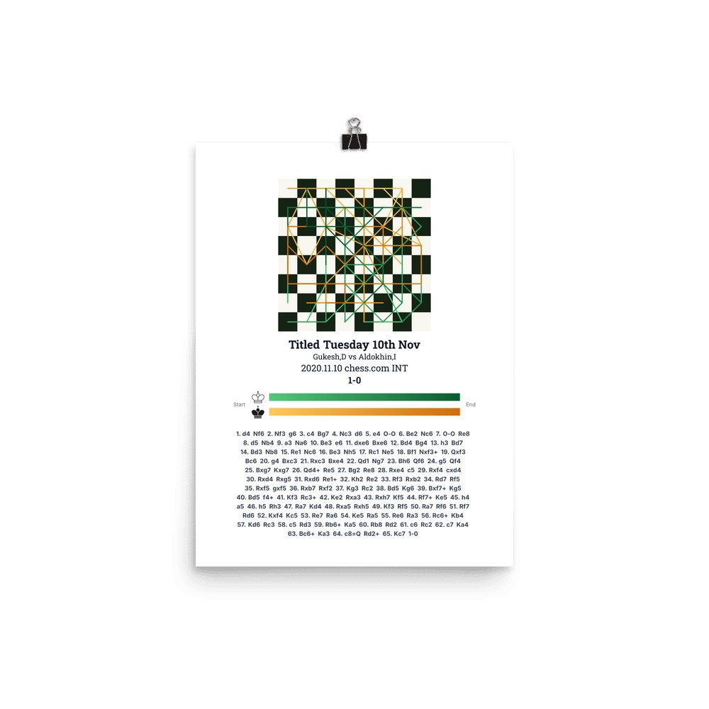 Museum-quality poster on thick, durable matte paper. A sharp, clean look for any chess visualisation.