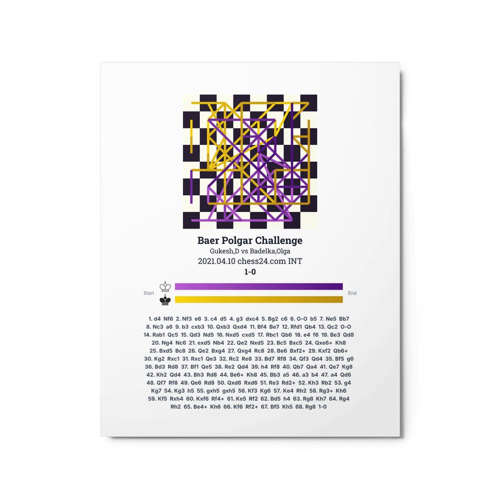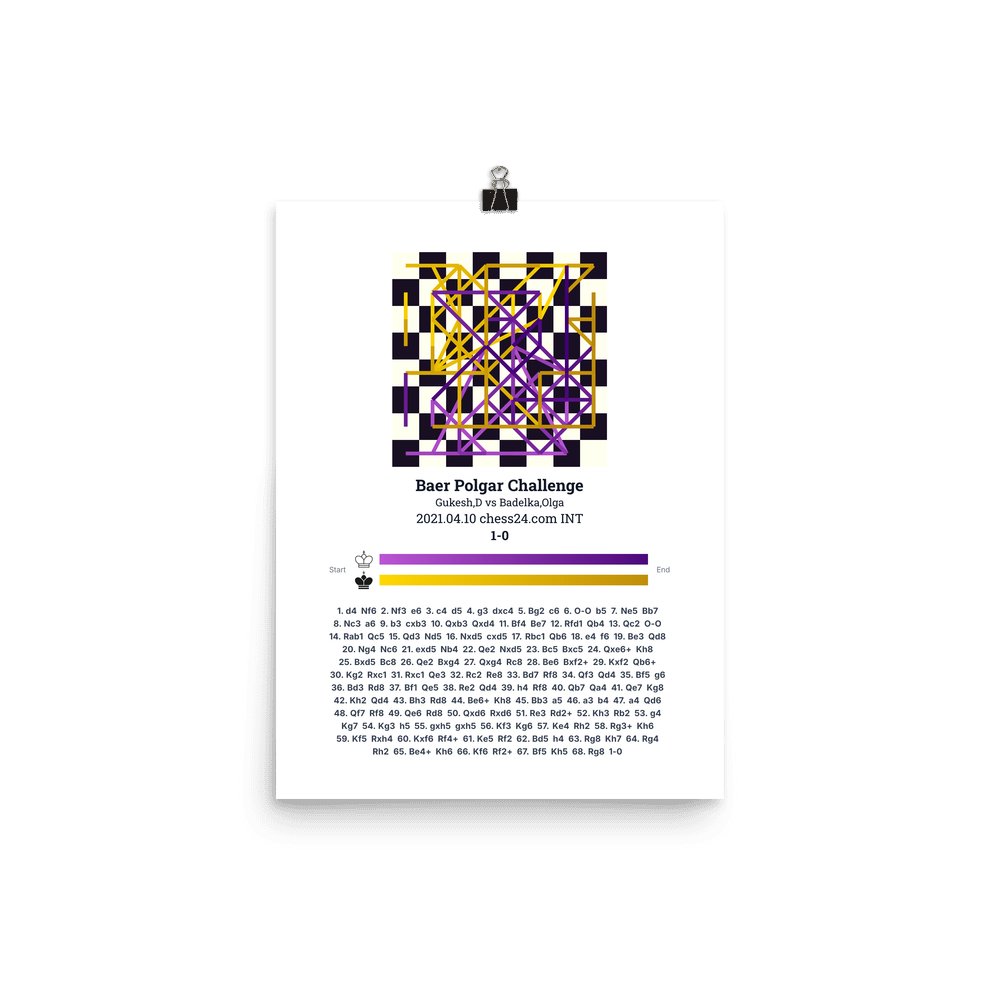 Museum-quality poster on thick, durable matte paper. A sharp, clean look for any chess visualisation.