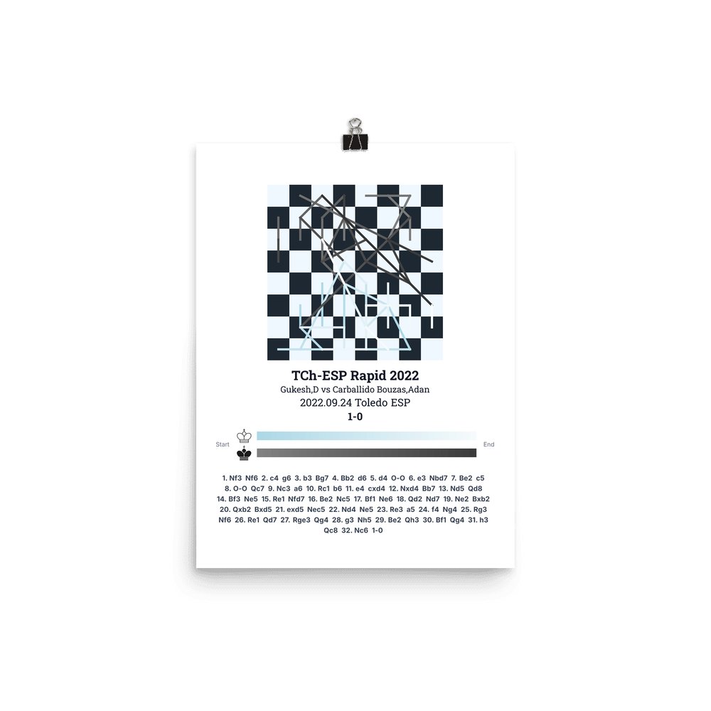 Museum-quality poster on thick, durable matte paper. A sharp, clean look for any chess visualisation.