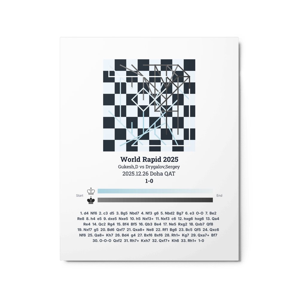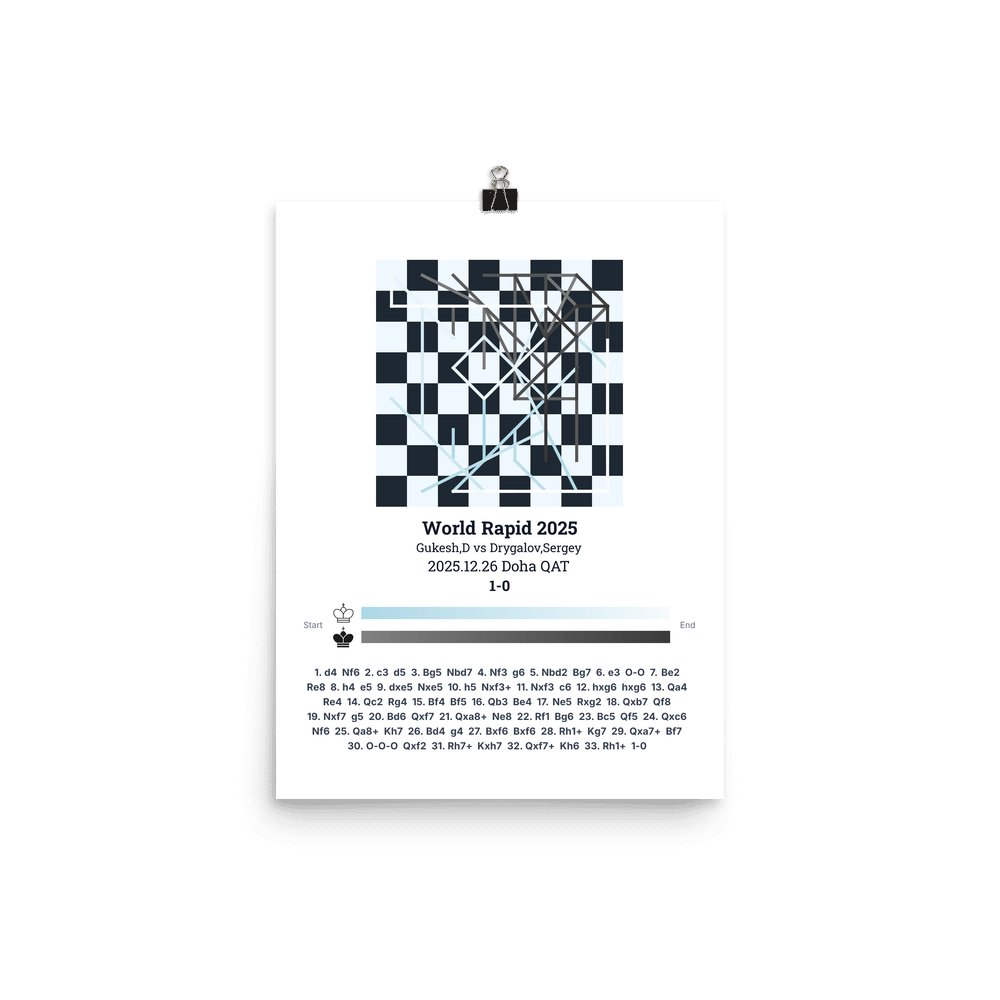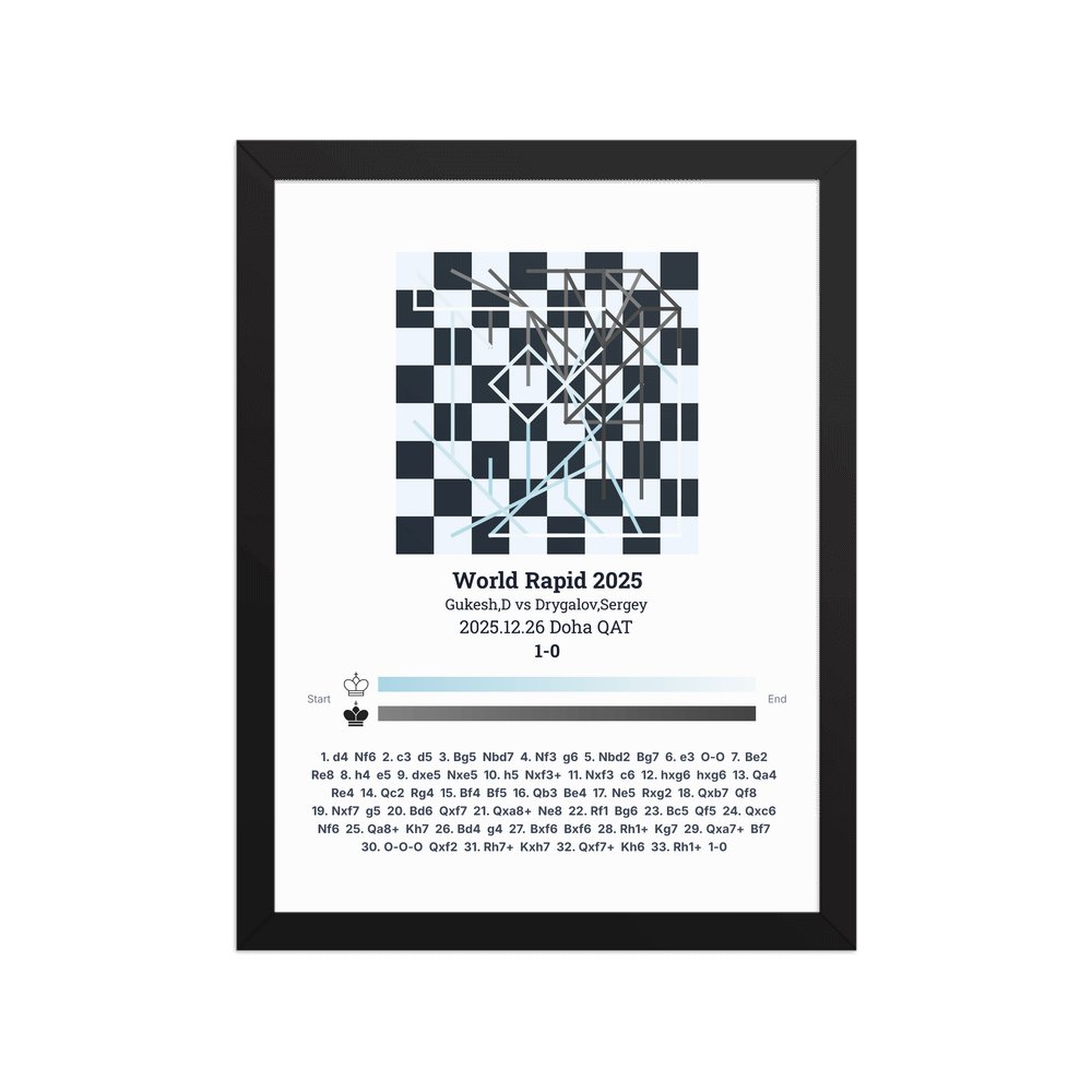 Museum-quality poster on thick, durable matte paper. A sharp, clean look for any chess visualisation.