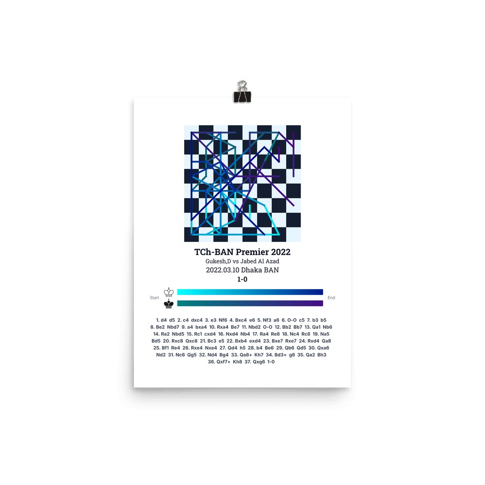 Museum-quality poster on thick, durable matte paper. A sharp, clean look for any chess visualisation.