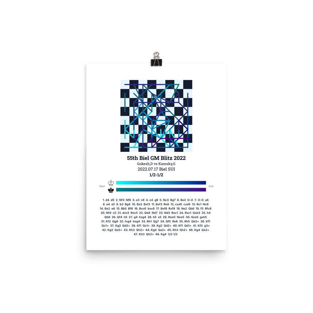 Museum-quality poster on thick, durable matte paper. A sharp, clean look for any chess visualisation.