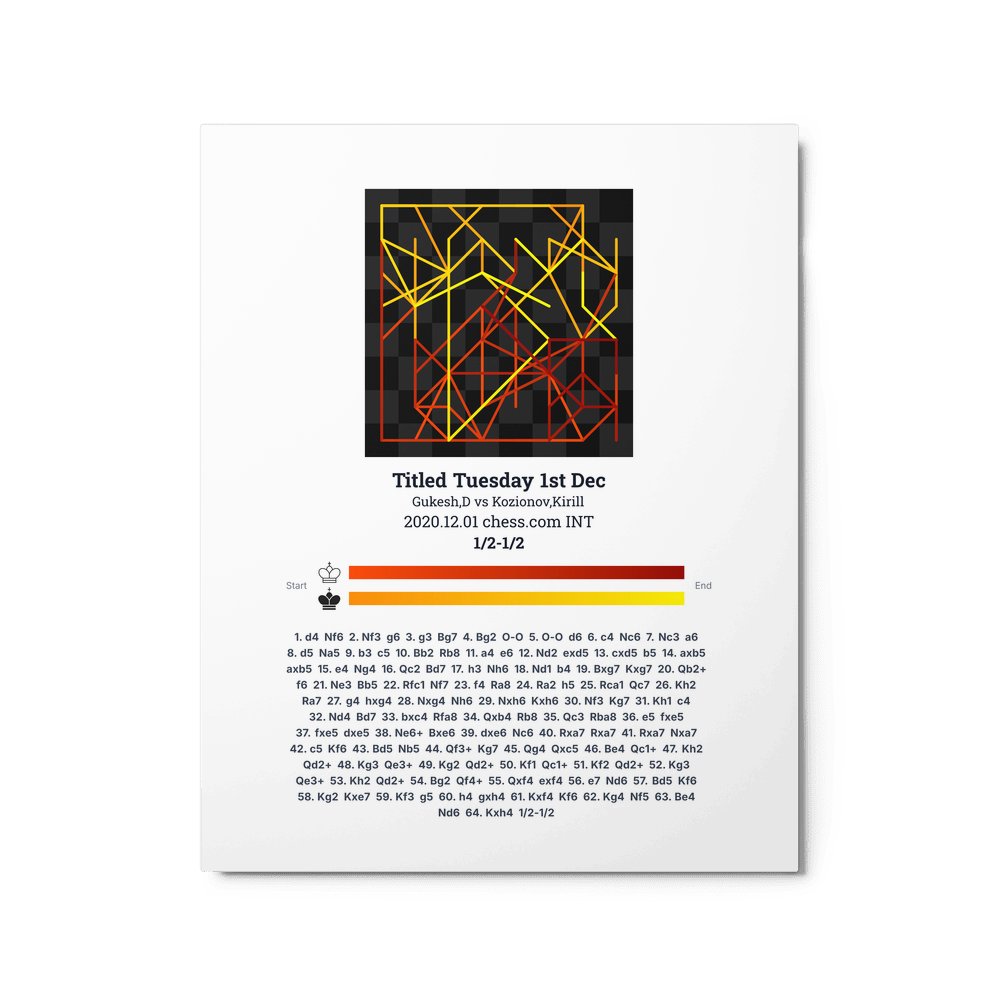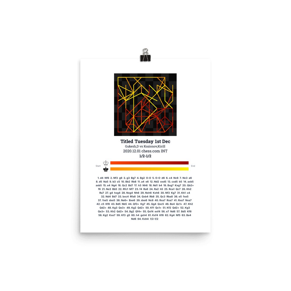 Museum-quality poster on thick, durable matte paper. A sharp, clean look for any chess visualisation.