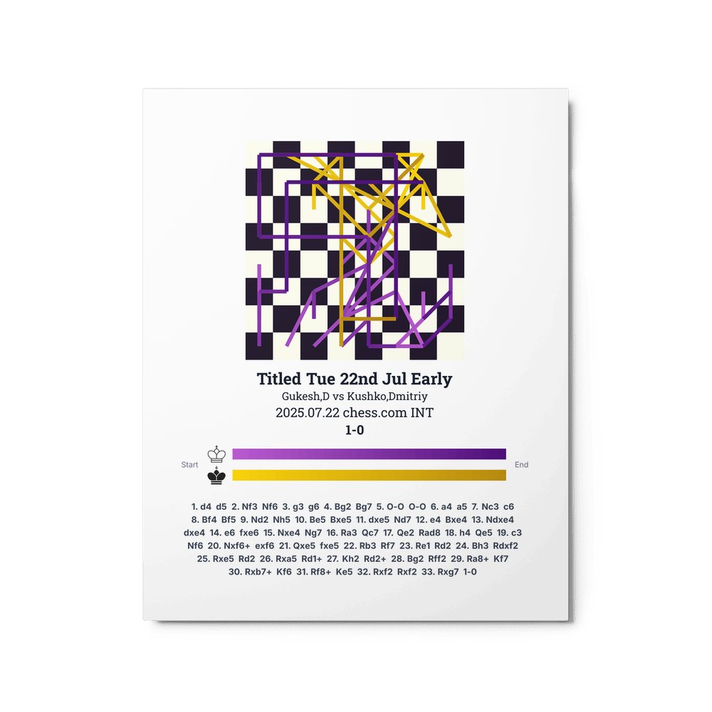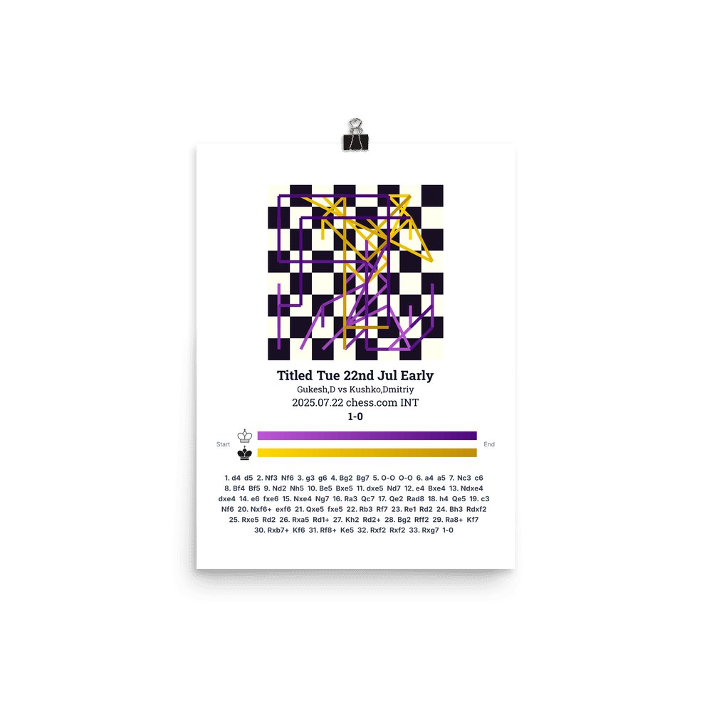 Museum-quality poster on thick, durable matte paper. A sharp, clean look for any chess visualisation.