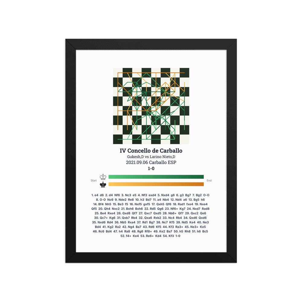 Museum-quality poster on thick, durable matte paper. A sharp, clean look for any chess visualisation.