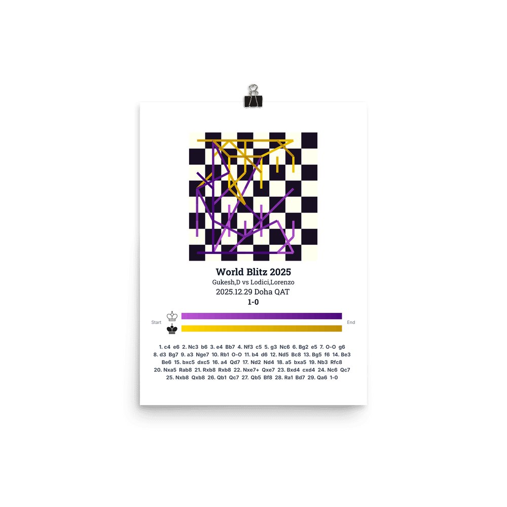 Museum-quality poster on thick, durable matte paper. A sharp, clean look for any chess visualisation.