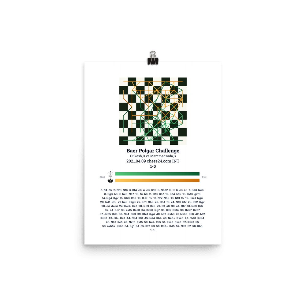 Museum-quality poster on thick, durable matte paper. A sharp, clean look for any chess visualisation.