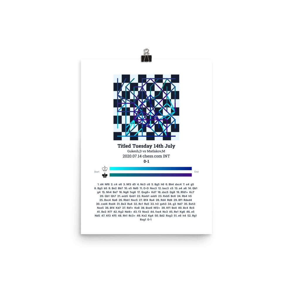 Museum-quality poster on thick, durable matte paper. A sharp, clean look for any chess visualisation.