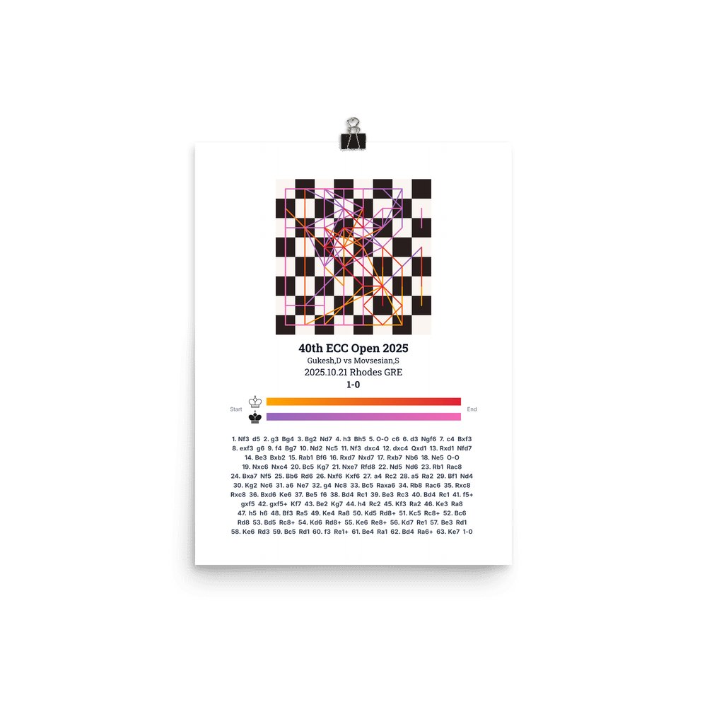 Museum-quality poster on thick, durable matte paper. A sharp, clean look for any chess visualisation.