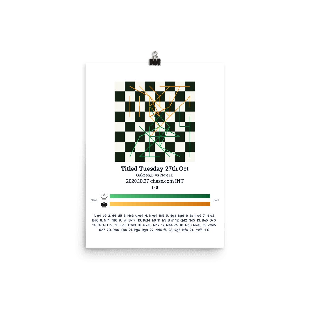 Museum-quality poster on thick, durable matte paper. A sharp, clean look for any chess visualisation.