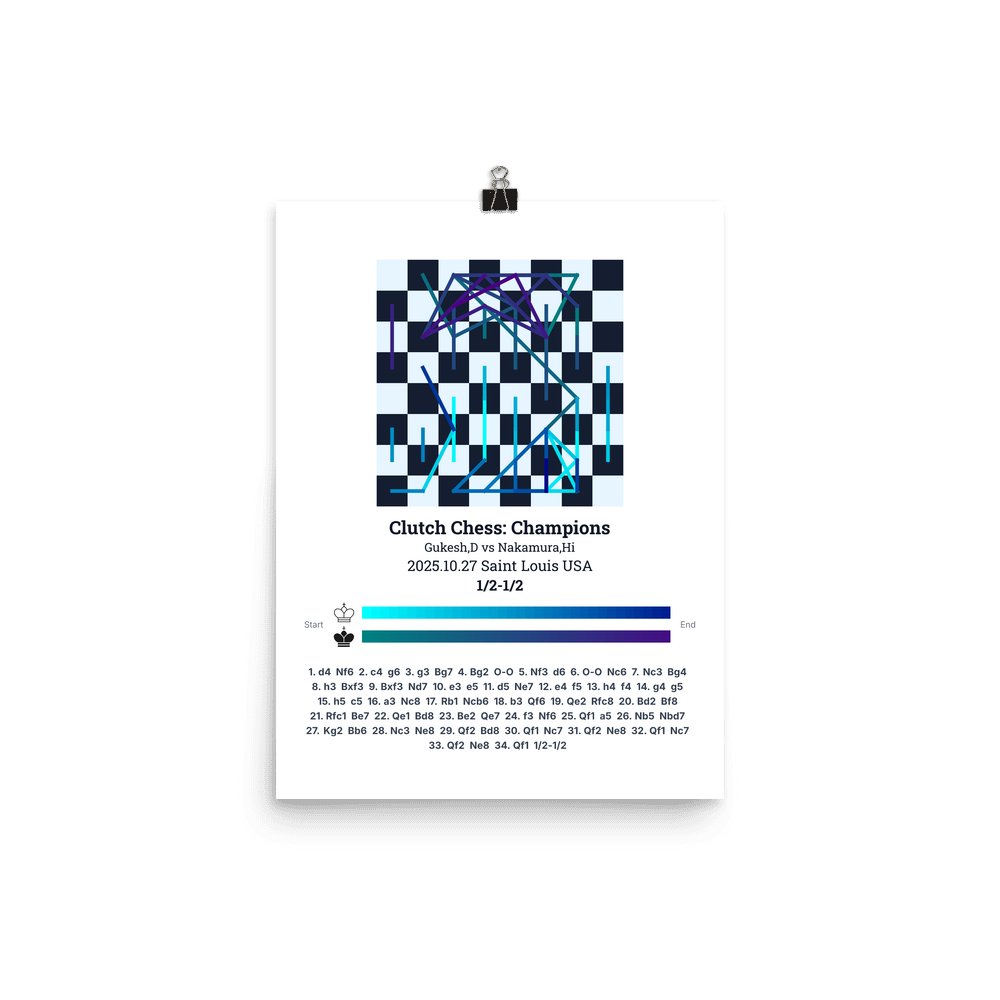 Museum-quality poster on thick, durable matte paper. A sharp, clean look for any chess visualisation.