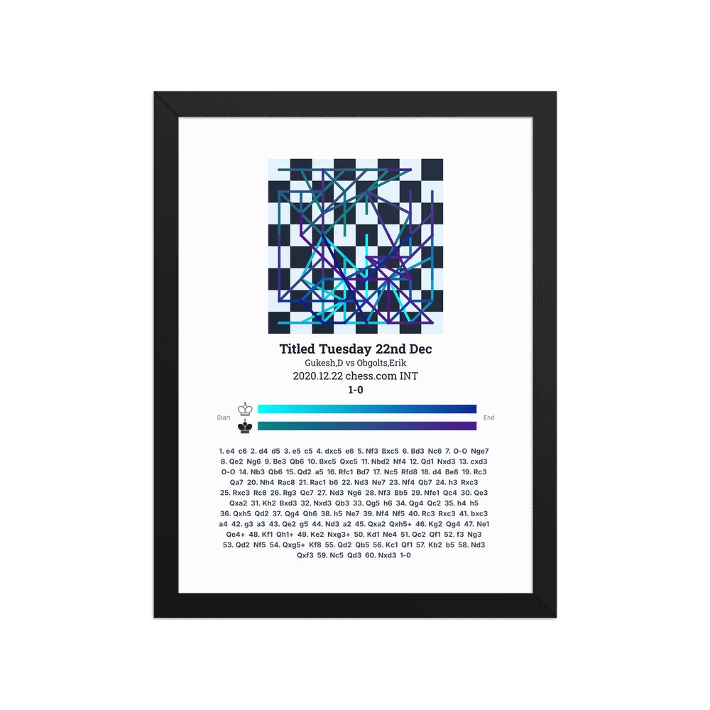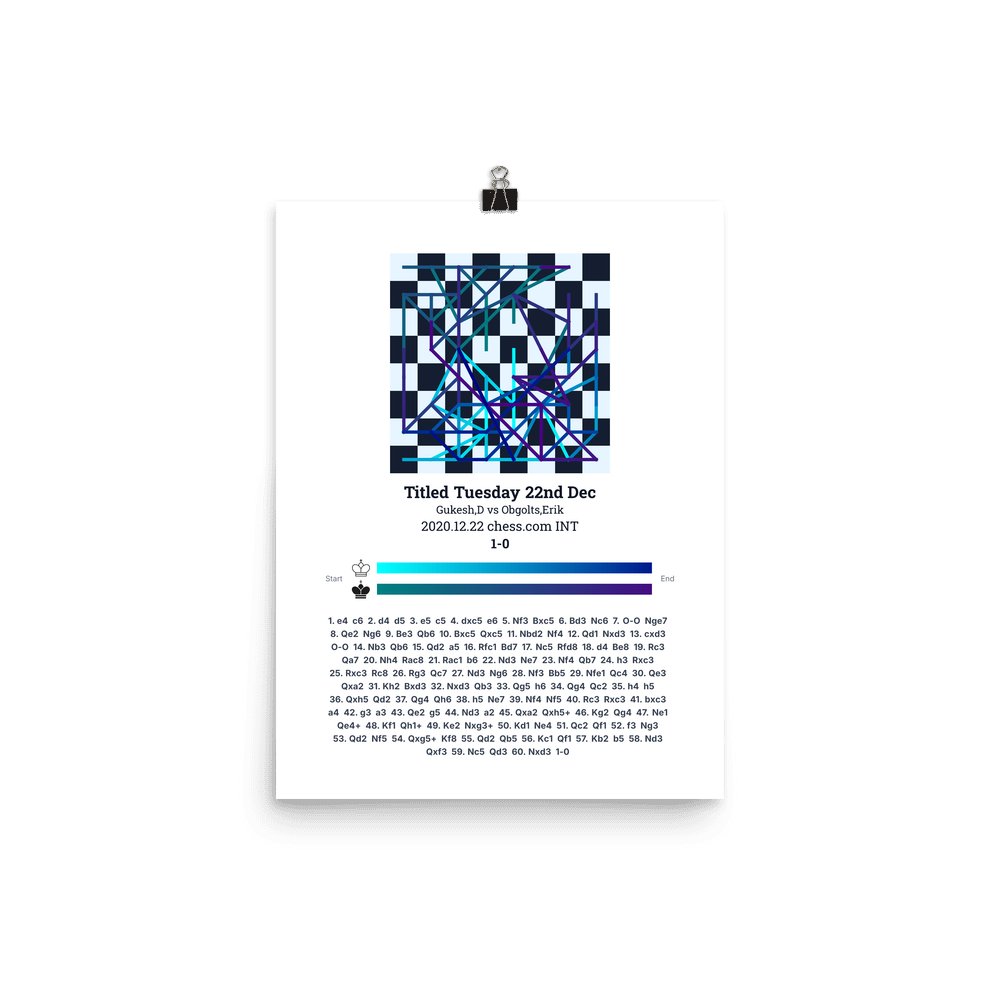 Museum-quality poster on thick, durable matte paper. A sharp, clean look for any chess visualisation.