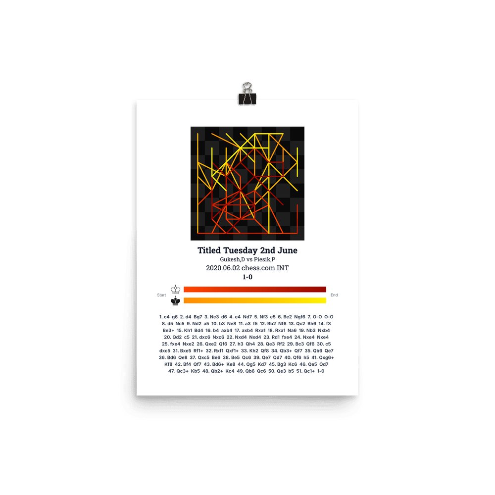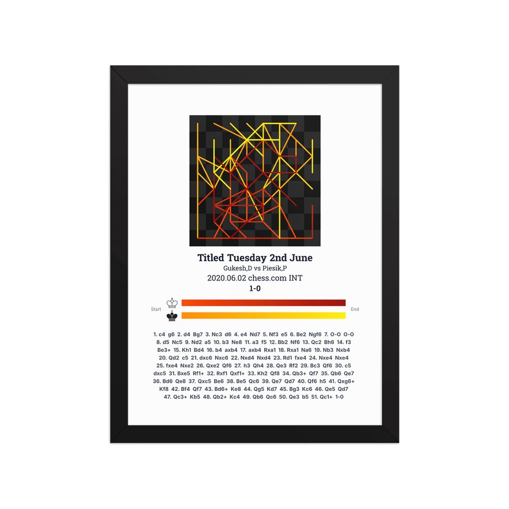 Museum-quality poster on thick, durable matte paper. A sharp, clean look for any chess visualisation.