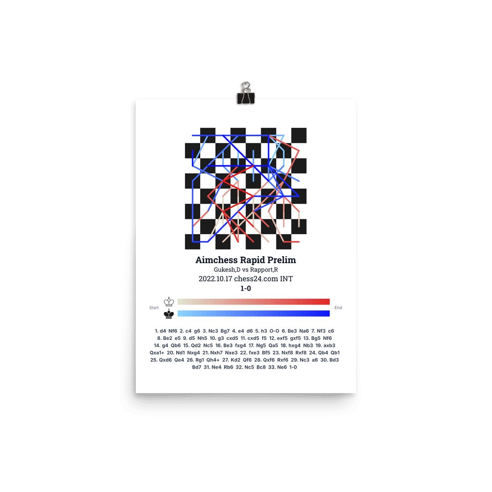 Museum-quality poster on thick, durable matte paper. A sharp, clean look for any chess visualisation.