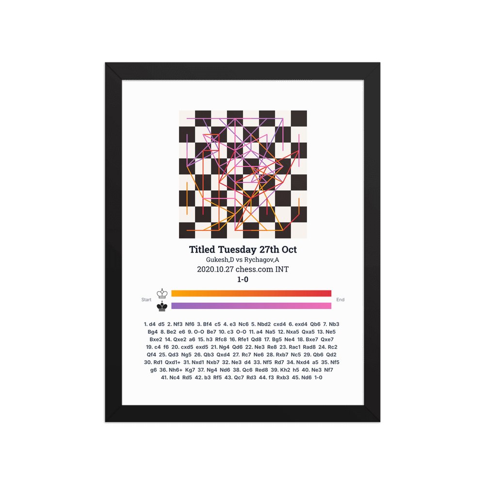 Museum-quality poster on thick, durable matte paper. A sharp, clean look for any chess visualisation.