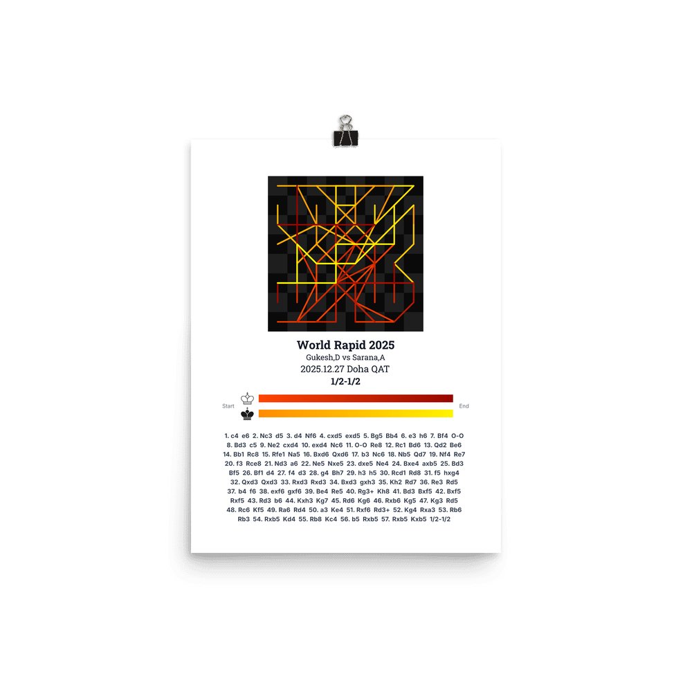 Museum-quality poster on thick, durable matte paper. A sharp, clean look for any chess visualisation.