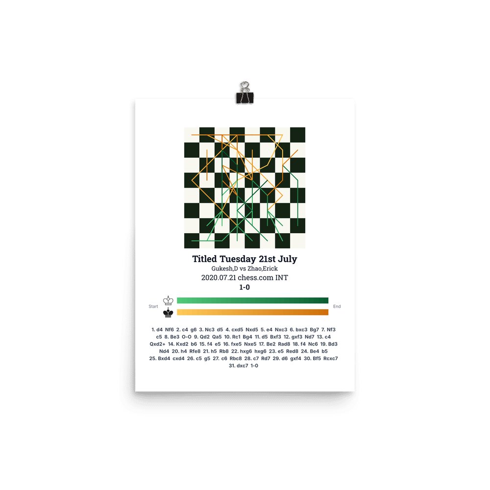 Museum-quality poster on thick, durable matte paper. A sharp, clean look for any chess visualisation.
