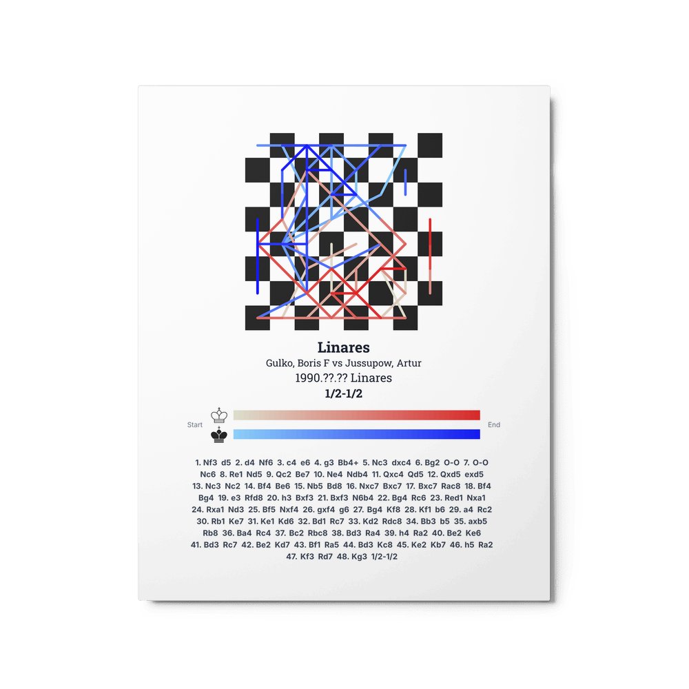Museum-quality poster on thick, durable matte paper. A sharp, clean look for any chess visualisation.