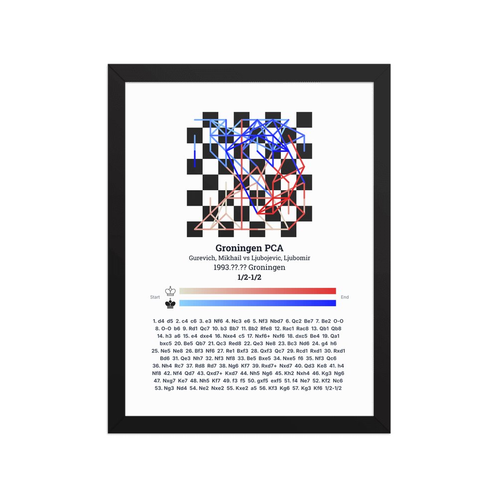 Museum-quality poster on thick, durable matte paper. A sharp, clean look for any chess visualisation.