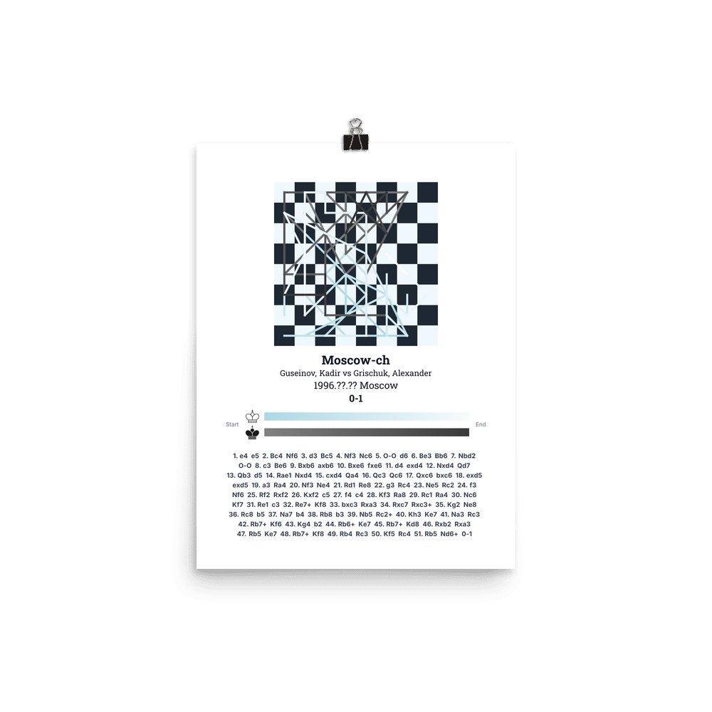 Museum-quality poster on thick, durable matte paper. A sharp, clean look for any chess visualisation.
