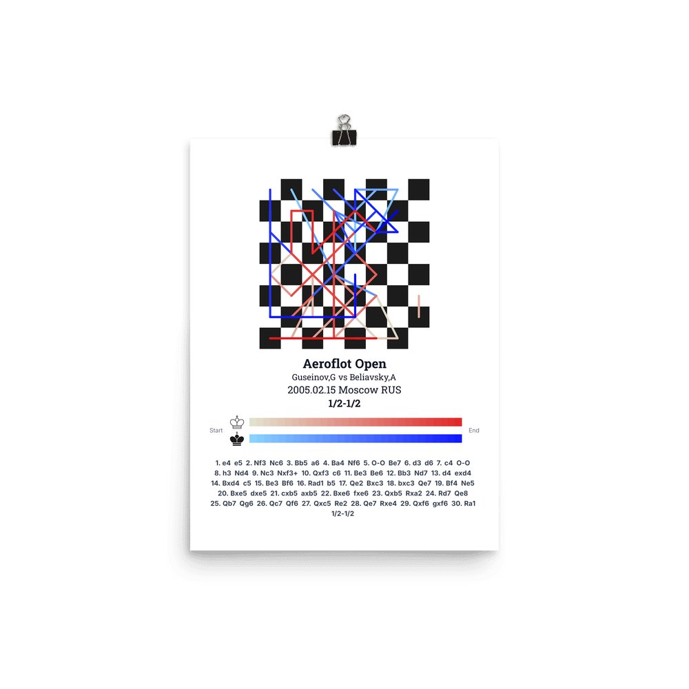 Museum-quality poster on thick, durable matte paper. A sharp, clean look for any chess visualisation.