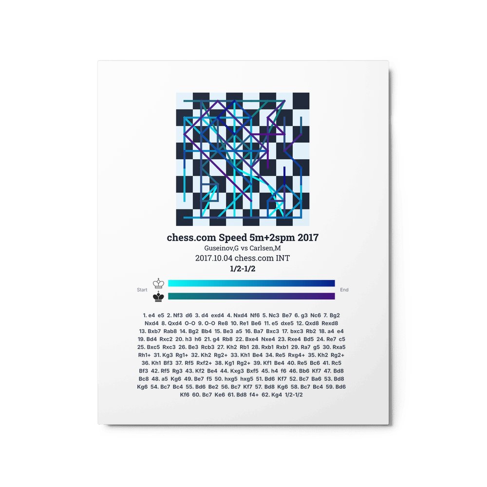 Museum-quality poster on thick, durable matte paper. A sharp, clean look for any chess visualisation.