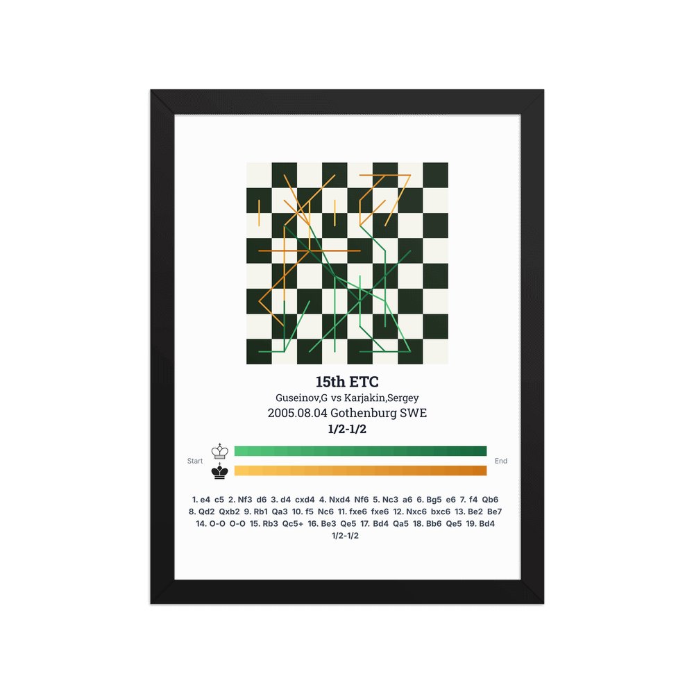 Museum-quality poster on thick, durable matte paper. A sharp, clean look for any chess visualisation.