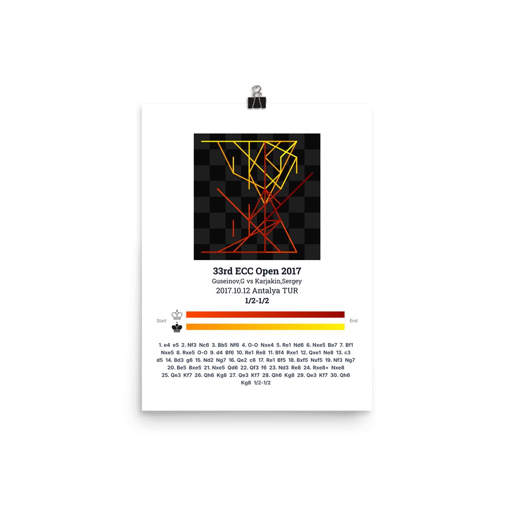 Museum-quality poster on thick, durable matte paper. A sharp, clean look for any chess visualisation.