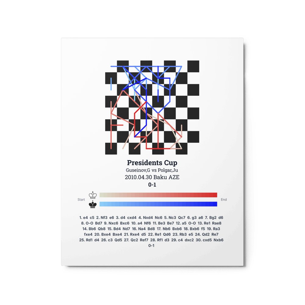 Museum-quality poster on thick, durable matte paper. A sharp, clean look for any chess visualisation.