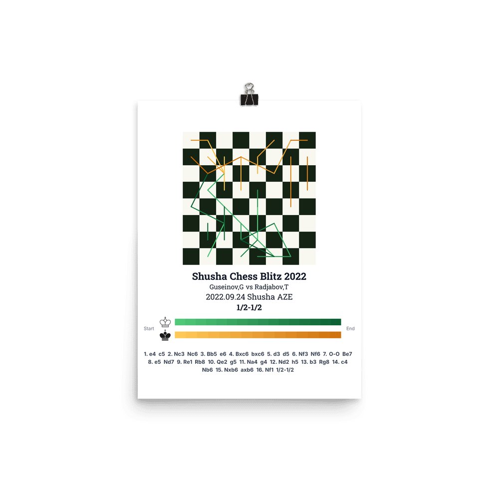 Museum-quality poster on thick, durable matte paper. A sharp, clean look for any chess visualisation.