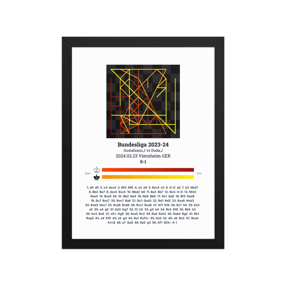 Museum-quality poster on thick, durable matte paper. A sharp, clean look for any chess visualisation.