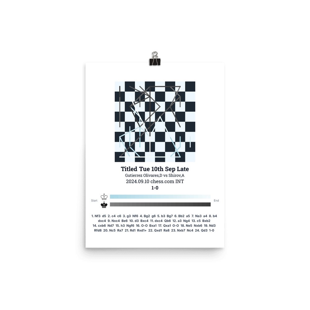 Museum-quality poster on thick, durable matte paper. A sharp, clean look for any chess visualisation.