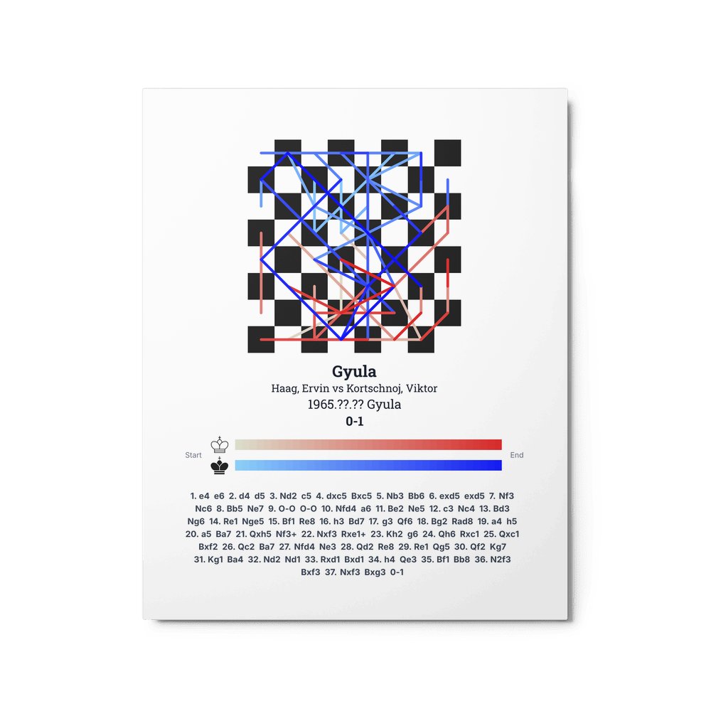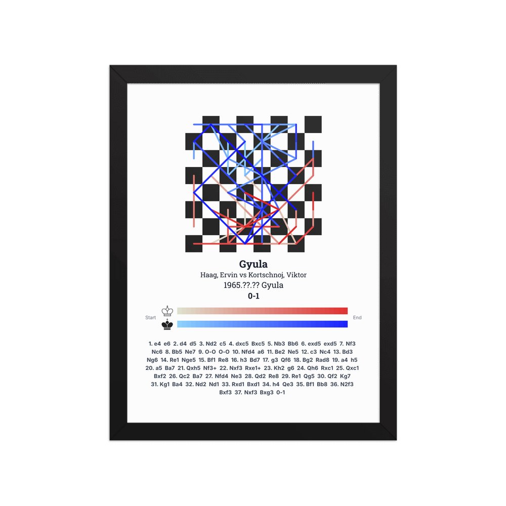 Museum-quality poster on thick, durable matte paper. A sharp, clean look for any chess visualisation.