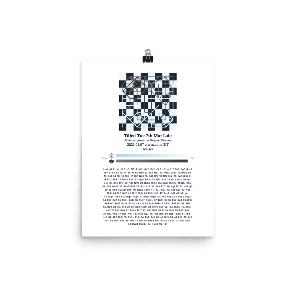Museum-quality poster on thick, durable matte paper. A sharp, clean look for any chess visualisation.