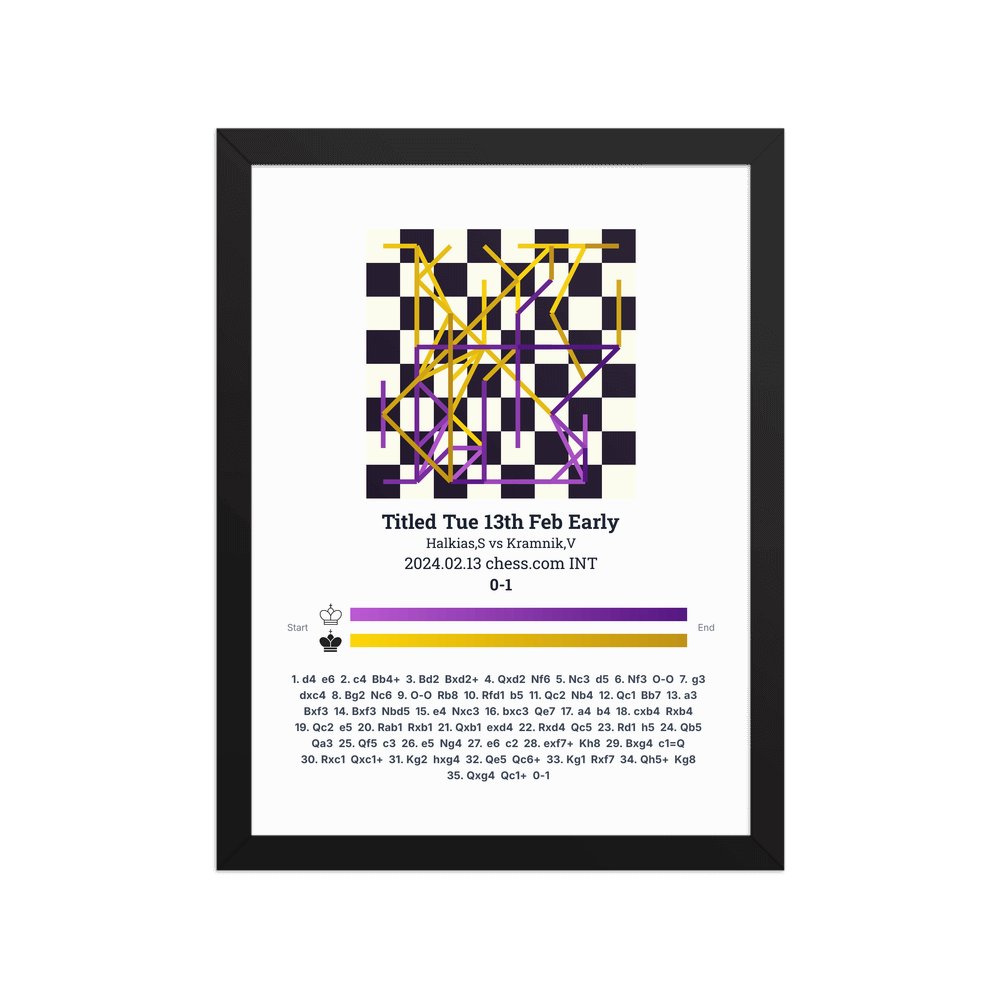 Museum-quality poster on thick, durable matte paper. A sharp, clean look for any chess visualisation.